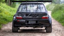 EXTERIOR: Full 106 Maxi MC Racing bodykit, carbon fibre doors, roof, bonnet, and tailgate Aerocatches on bonnet and tailgate, cut outs for intercooler and rearmounted radiator, headlight ducts, polycarbonate rear and side windows with air ducts and fuel filler mounted on driver’s side, large rear wing mounted on roll cage