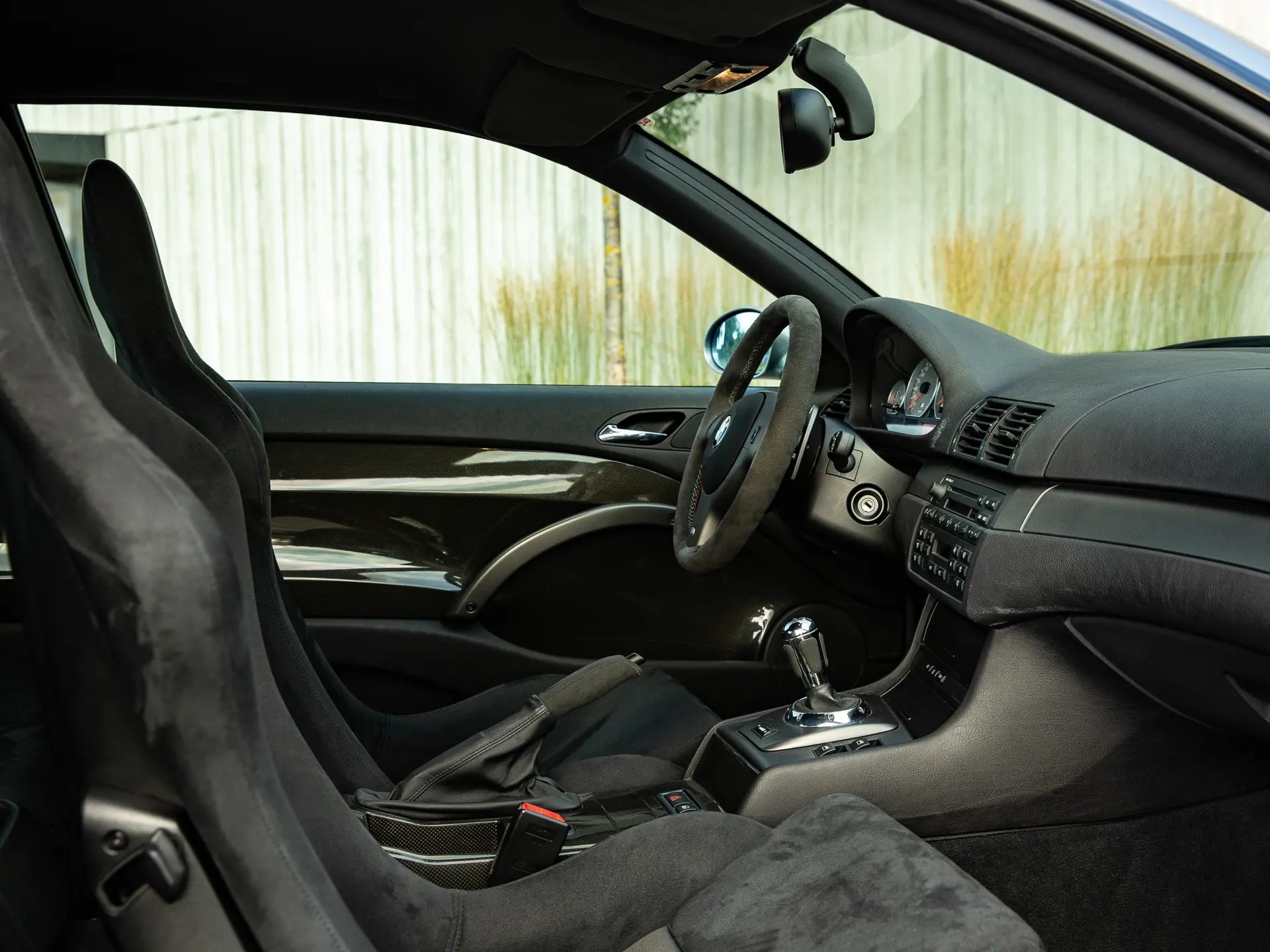 Остальной салон выполнен из чёрной алькантары, сиденья Recaro оснащены гоночными ремнями Schroth. Редкая для GTS комплектация включает кондиционер и аудиосистему BMW Professional.