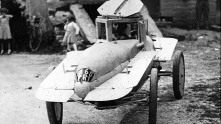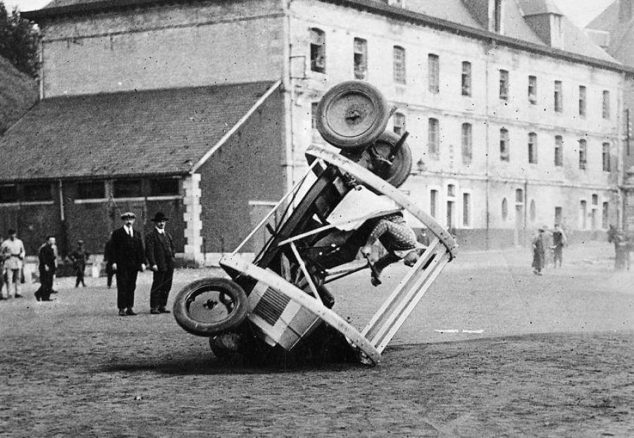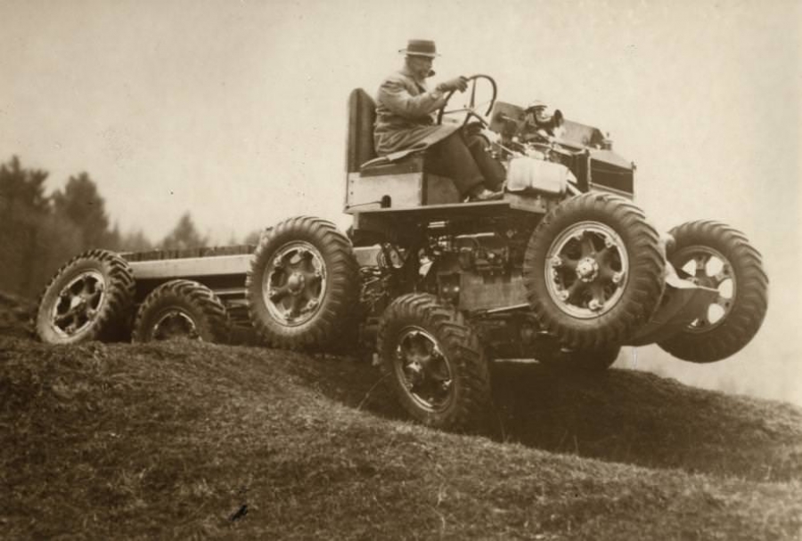 14 — Бронированный автомобиль Sizaire-Berwick Wind Wagon времён Первой мировой войны. Фотография сделана на трассе Бруклендс. Автомобили остнастили пропеллером для увеличения скорости.