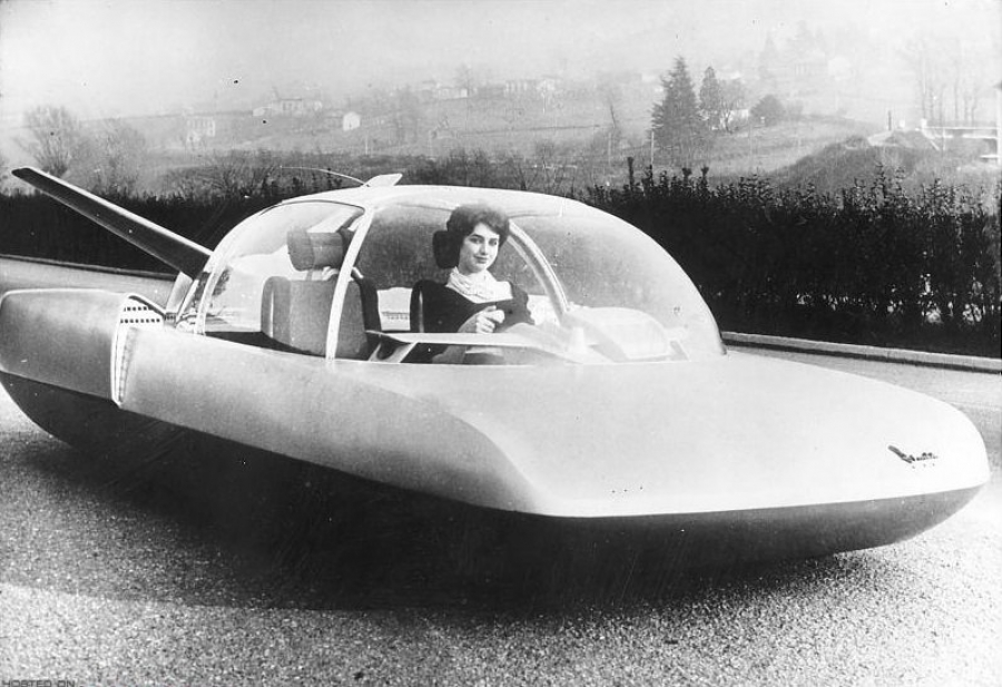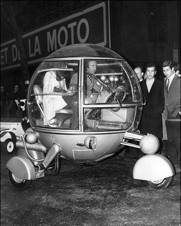23 — Концепт Simca Fulgur, созданный французской компанией Simca. Предполагалось, что он будет работать на атомной энергии, управляться радаром и передвигаться на двух колёсах с гироскопической стабилизацией на скорости свыше 150 км/ч.