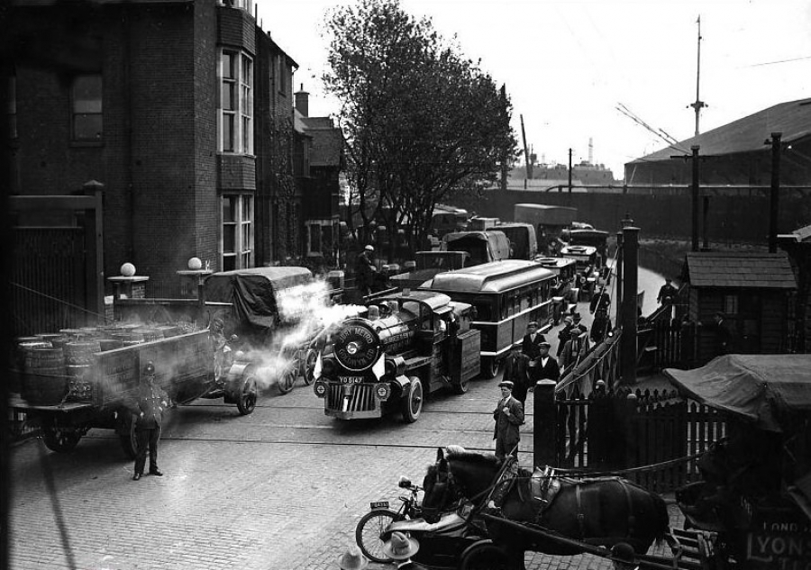35 — Бесрельсовый поезд отправляется от дока имени короля Георга V в Лондон.