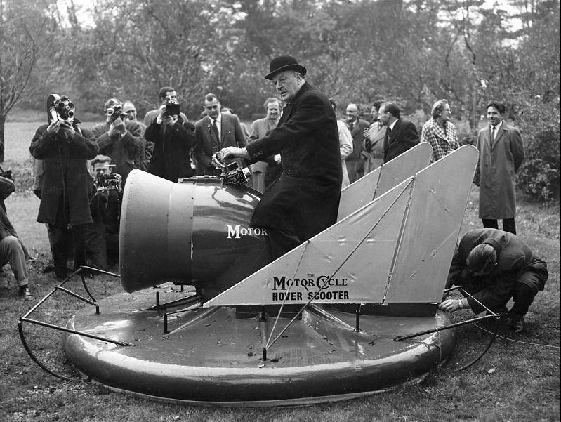26 — Лорд Брабазон, британский пионер авиации, демонстрирует ховер-скутер в Лонг-Диттоне, графство Суррей.