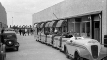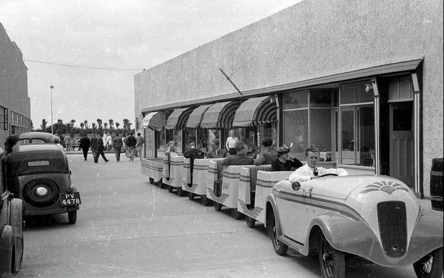 1 — Отдыхающие катаются на «поезде» в лагере Butlin’s Holiday Camp, Скегнесс, Линкольншир.