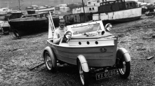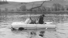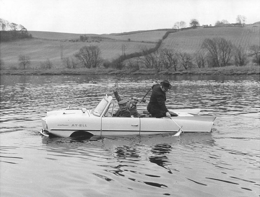 6 — Амфибия Amphicar немецкого производства, оснащённая двигателем от Triumph Herald и способная развивать на воде скорость до 7,5 км/ч. На фотографии амфибия используется владельцем как рыбацкая лодка в начале сезона ловли лосося на реке Тей в Шотландии.