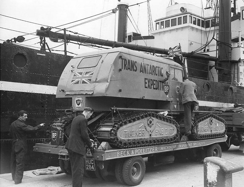 18 — «Haywire» — один из гусеничных вездеходов, использовавшихся доктором Фуксом и его экспедицией Содружества во время путешествия через Антарктиду, прибывает в Тилбери из Новой Зеландии через Антверпен.