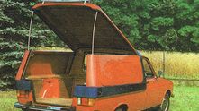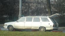 Dacia 1309 prototip al modelului de serie, se deosebeste de acesta prin asezarea lunetei si constructie stalpului spate.