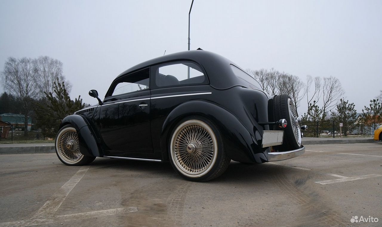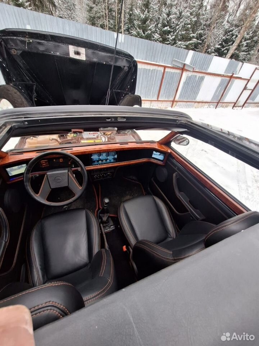 «Кастом проект: двигатель 2.0 opel 150 л.с, передний привод, МКПП, пневмоподвеска airlift perfomance, рэгтоп, салон красное дерево, кожа наппа, новая японская резина R18, камеры 360 гр, андроид, муз. усилитель. Пробег 500 км. Красивый старинный автомобиль для любителей», — пишет продавец.
