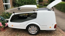 Более полезной опцией был навес, который превращал этот прицеп в запираемый контейнер для хранения, который не цеплял бы балки в подземном паркинге. Кроме того, навес имел рейлинги на крыше, что делало совместимыми самые разные крепления: багажники для велосипедов, для сноубордов, кофры на крышу — всё, что угодно.