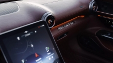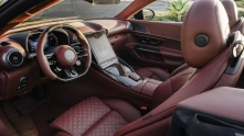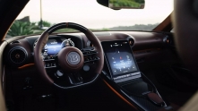Салон выполнен в том же духе — практически всё пространство отделано ярко-красной кожей с вкраплениями карбона и металлических элементов.