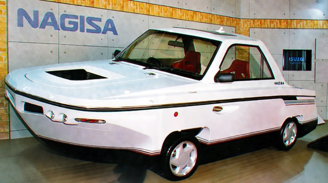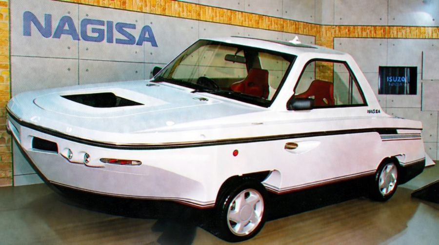 Может ли автомобиль-амфибия стать массовым продуктом? Сейчас мы можем сказать — скорее всего нет. А между тем в начале 1990-х компания Isuzu, похоже, сочла идею вполне жизнеспособной и представила по-настоящему безумный концепт амфибии Isuzu Nagisa.