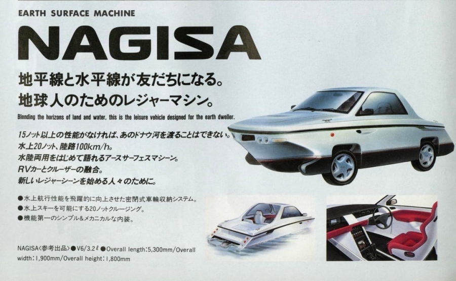 Однако морские испытания Nagisa показали, что реализовать эту идею оказалось сложно: на дорогах автомобиль был слишком медленным и неуклюжим, а на воде ему не хватало устойчивости.