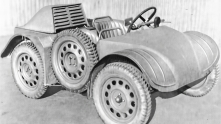 Прототип получил независимую подвеску и двухцилиндровый оппозитный двигатель JAP с воздушным охлаждением, установленный прямо на задней оси. На фото хорошо виден крупный воздухозаборник.