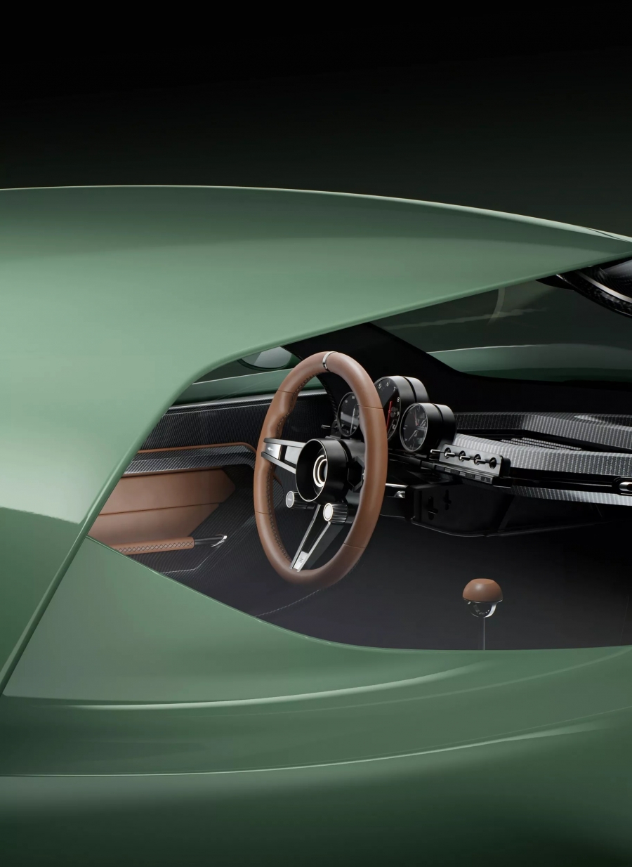 Результат — более 900 л.с. (662 кВт) и 1000 Нм крутящего момента. При массе менее 1200 кг (примерно как Mazda MX-5 RF с жёсткой крышей) это обещает взрывную динамику: разгон до 100 км/ч — менее трёх секунд, максимальная скорость — 360 км/ч.