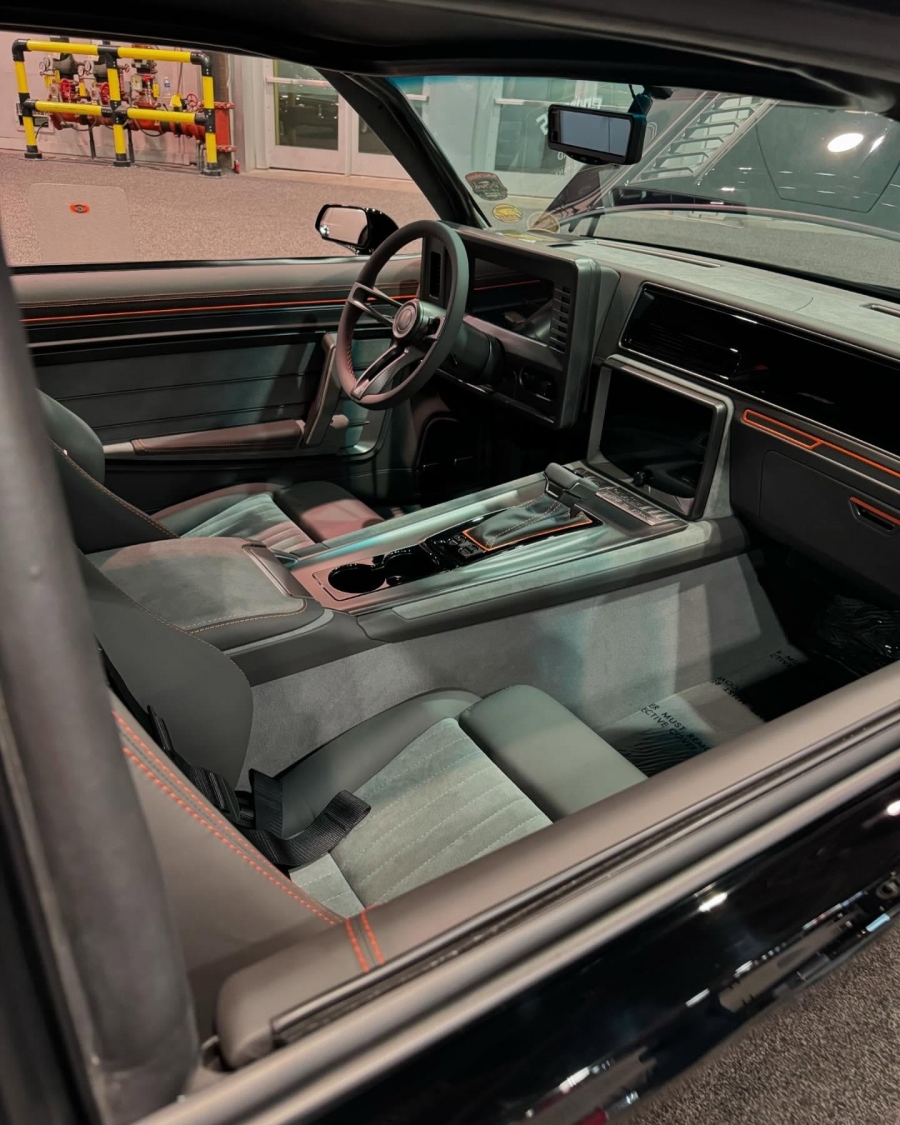 Шасси столь же серьёзное: подвеска Detroit Speed спереди и сзади смонтирована на кастомной раме. За торможение отвечают 6-поршневые суппорты Baer Extreme+ с 356-мм дисками, а амортизаторы JRI оснащены системой подъёма передней оси.