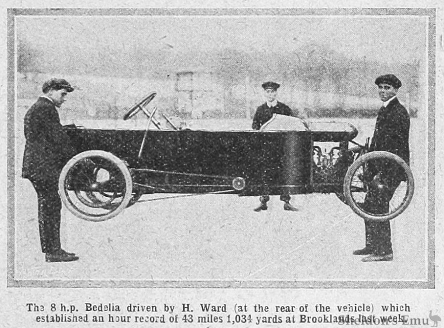 В выпуске Scientific American от 9 августа 1912 года на обложке изображена гоночная Bedelia, а принцип её работы описан довольно подробно: