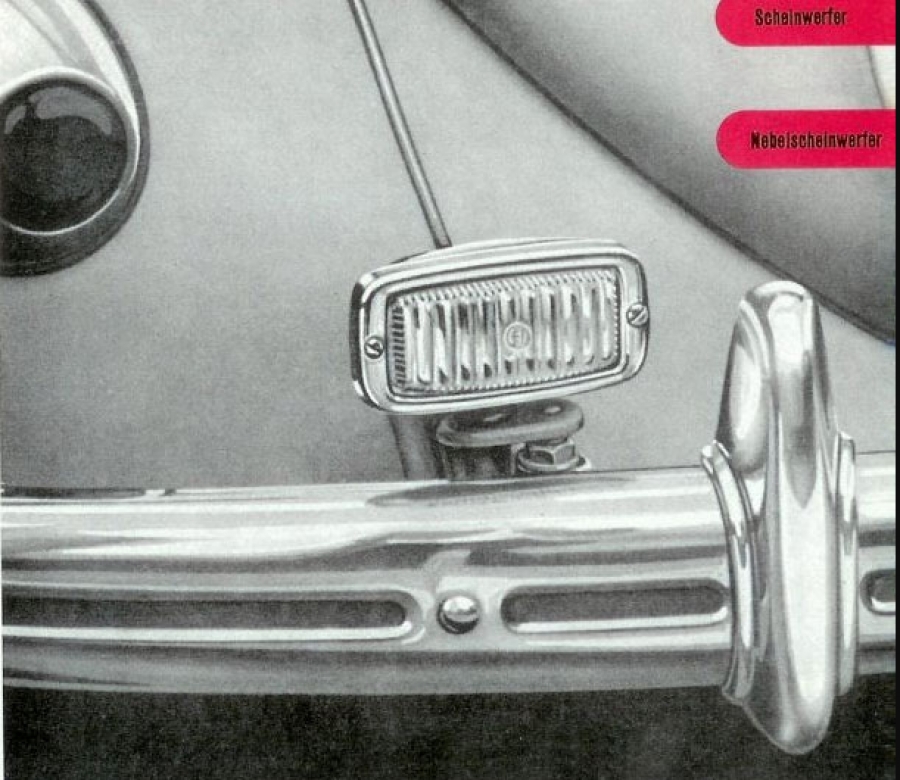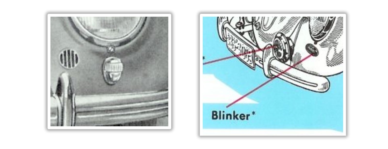 Эти нештатные поворотники могли быть самыми ранними мигающими указателями, которые можно было достать для своего «Жука», по крайней мере из тех, что рекламировались именно для VW. Вот как выглядели указатели от Bosch, спереди и сзади: