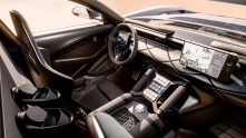 Салон тоже полностью функциональный: гоночный руль с компактным дисплеем, облегчённые ковшеобразные сиденья, карбоновые двери, простёганная кожаная панель и множество ручек, отделанных алькантарой.