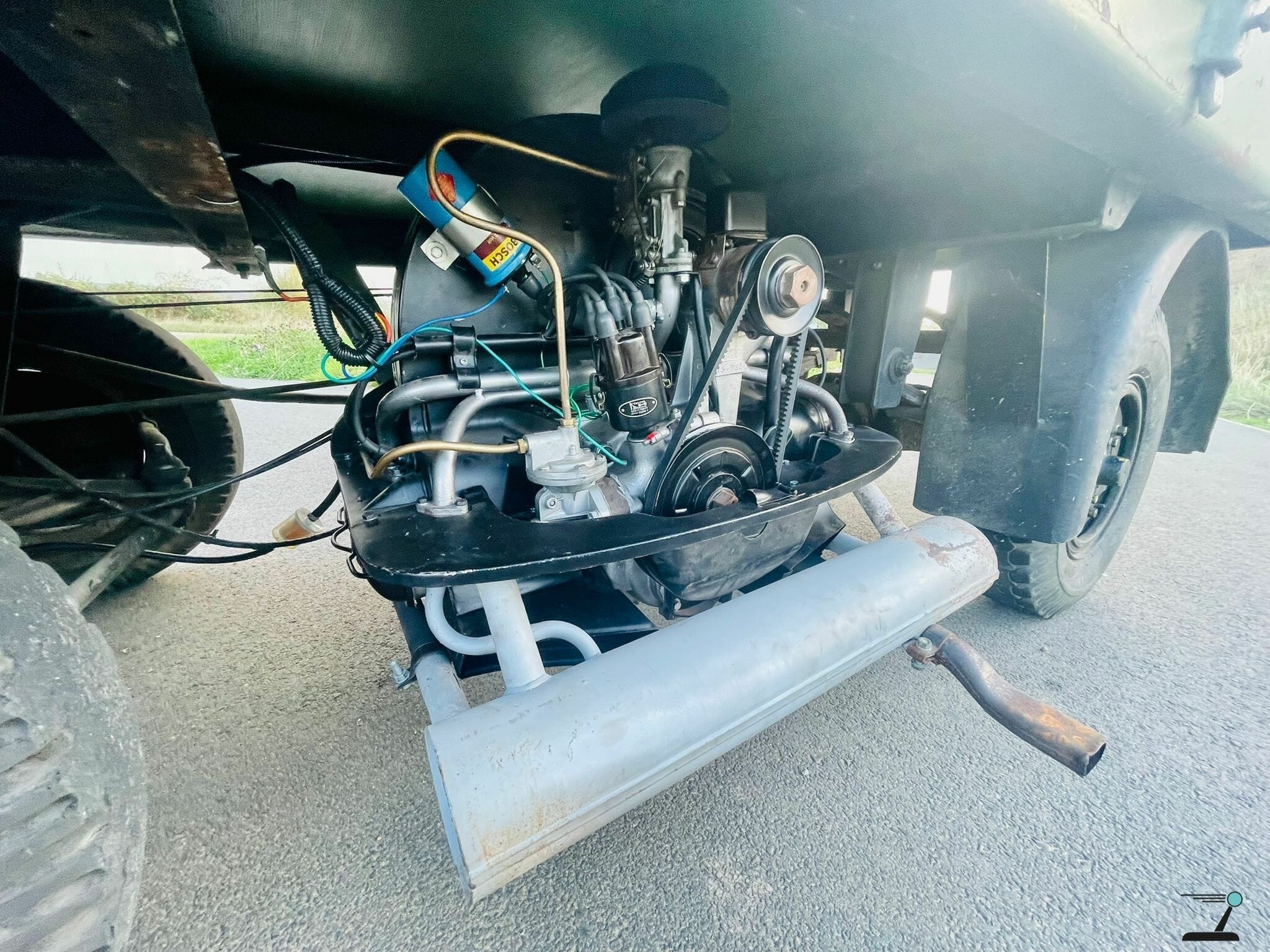 Невозможно не отметить, насколько необычно выглядит сам двигатель: он буквально висит под грузовой платформой, между колёсами, установленный поперечно. Вероятно, это единственный в своём роде автомобиль с поперечным среднемоторным расположением и задним приводом, оснащённый двигателем Volkswagen с воздушным охлаждением.