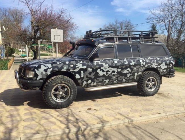 Универсал ГАЗ-310221 «Волга» получил лифтованную усиленную подвеску и большие зубастые внедорожные колеса. Для этого также пришлось подрезать колесные арки, иначе новые колеса просто не влезали.