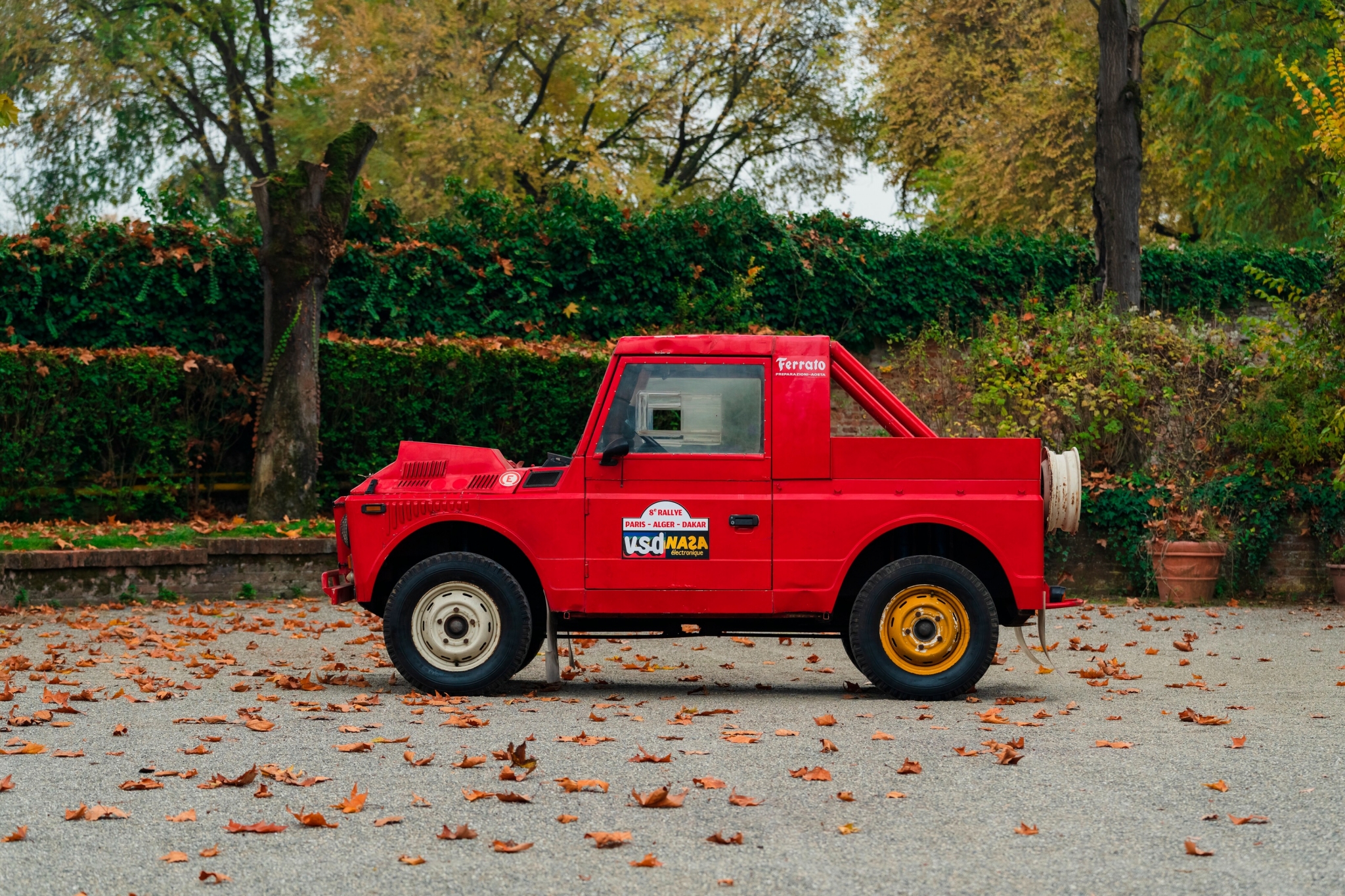 Подготовленный в 1984 году для ралли-рейдов итальянской мастерской Ferrato из Аосты (известной своими раллийными машинами), этот Fiat 1107 A Campagnola получил множество модернизаций — в том числе уникальным мотором.