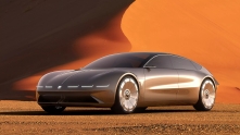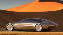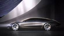 Автомобиль выглядит как удлинённое купе гран-туризмо: от сверхтонкого передка до стремительного хвоста линия кузова напоминает смесь стилистики 1950-х годов (вспоминается Citroën DS) с элементами футуризма времён космической гонки.