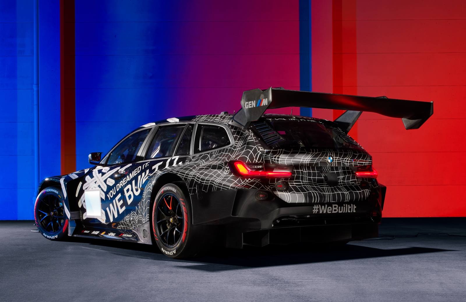 Как и ожидалось, по сути это BMW M4 GT3 EVO, «завёрнутый» в кузов BMW M3 Touring. Универсал получился на 200 мм длиннее и на 32 мм выше купе. Увеличенные габариты создали ряд аэродинамических сложностей, но инженеры решили их с помощью нового крепления антикрыла. Также были изменены форма и расположение самого антикрыла.