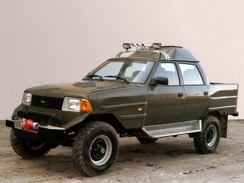 Проект «Тачанки» стал совместной работой АЗЛК и НАМИ и появился после двух менее вызывающих пикапов под названием «Гренадёр».