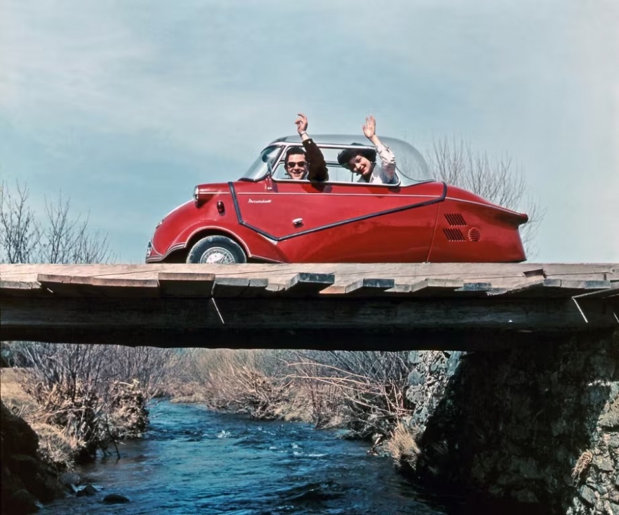 Но первоисточником идеи стал этот забавный микрокар из послевоенной Германии под названием Messerschmitt KR200.