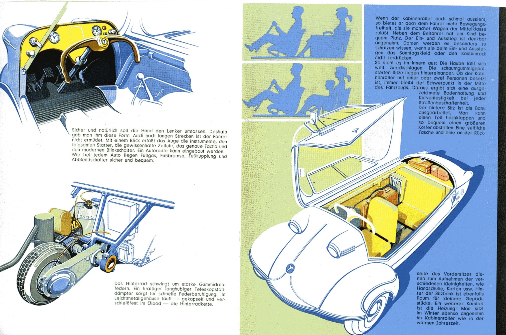 Но мне нравится думать, что причина была куда прозаичнее: микрокары того времени максимально использовали компоненты от скутеров и мотоциклов, чтобы снизить себестоимость.