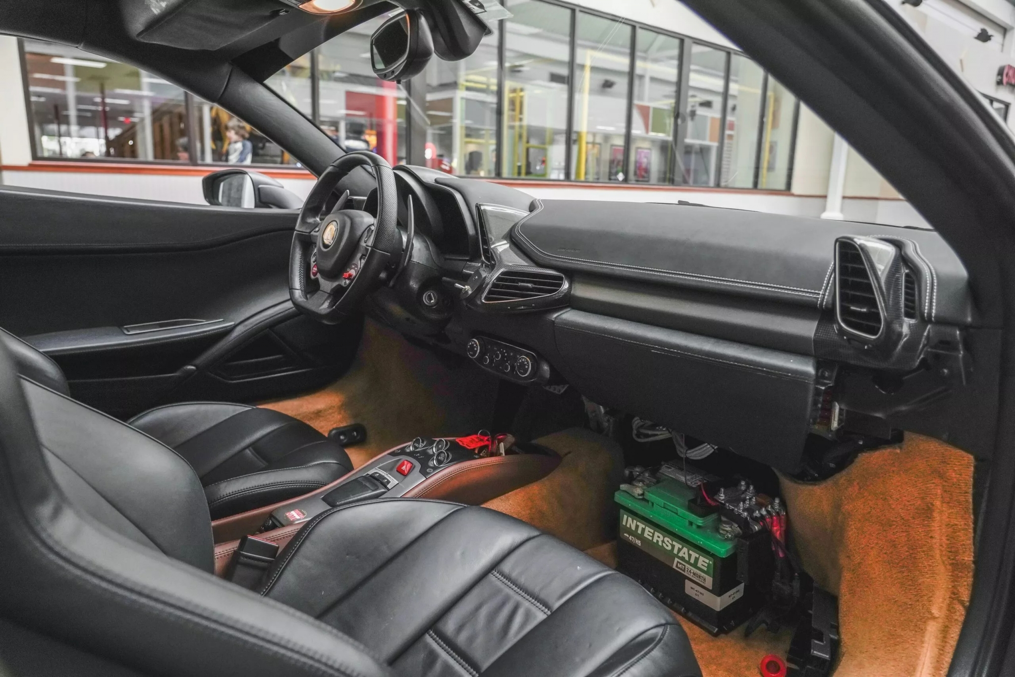 Интерьер в основном остался стандартным для 458 Italia, за исключением дополнительного аккумулятора в ногах пассажира.