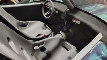 Салон отделан чёрным ковролином, установлены пластиковые ковшеобразные сиденья с поясными ремнями безопасности.