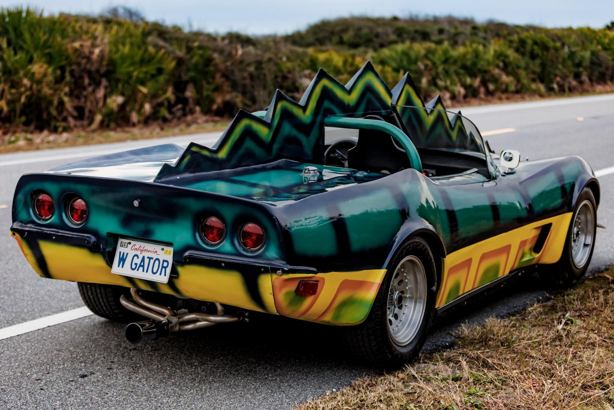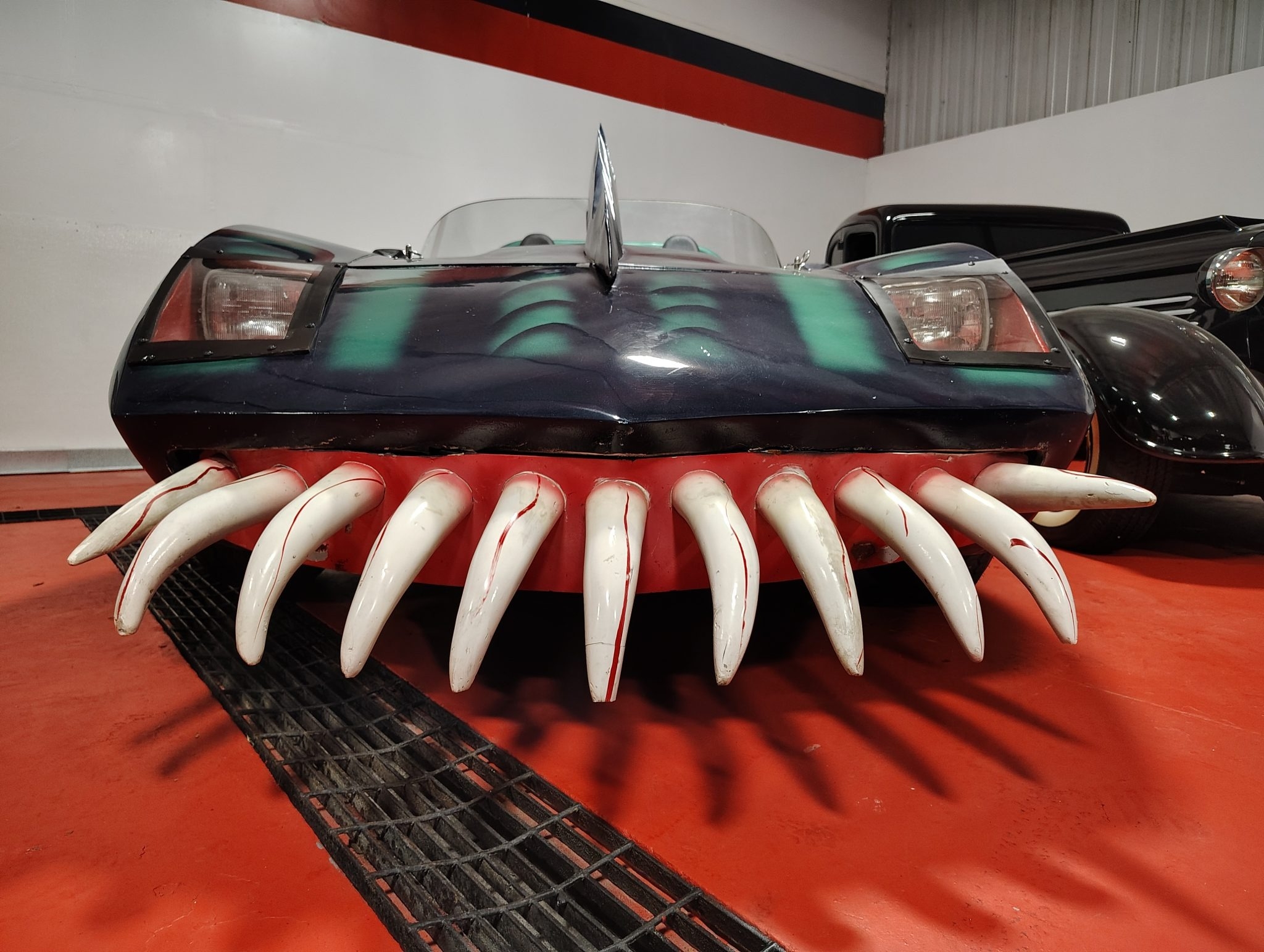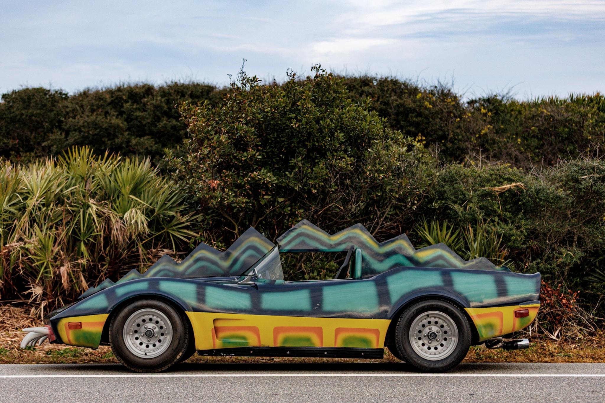 Этот родстер с кузовом из стеклопластика — реплика автомобиля «Monster» из фильма «Смертельная Гонка 2000» (Death Race 2000) 1975 года.