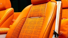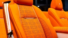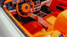 Интерьер поддерживает общий настрой: салон оформлен в контрастной бело-оранжевой коже. Неясно, входит ли эта цветовая схема в пакет Venuum или была заказана изначально у Rolls-Royce, но по духу она полностью соответствует принципу «чем громче — тем лучше».