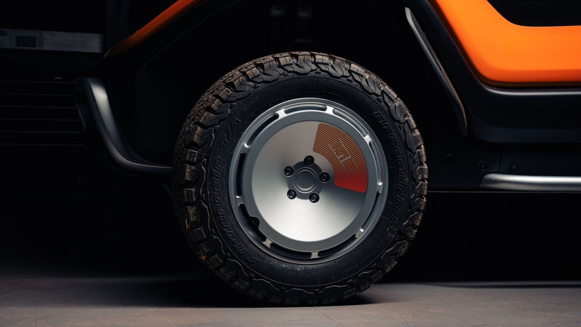 Кузов выполнен из карбона для снижения массы, а подвеска — с двойными амортизаторами, регулировками и гидравлическими отбойниками. Шины — BF Goodrich All-Terrain, плюс встроенная система защиты при опрокидывании.