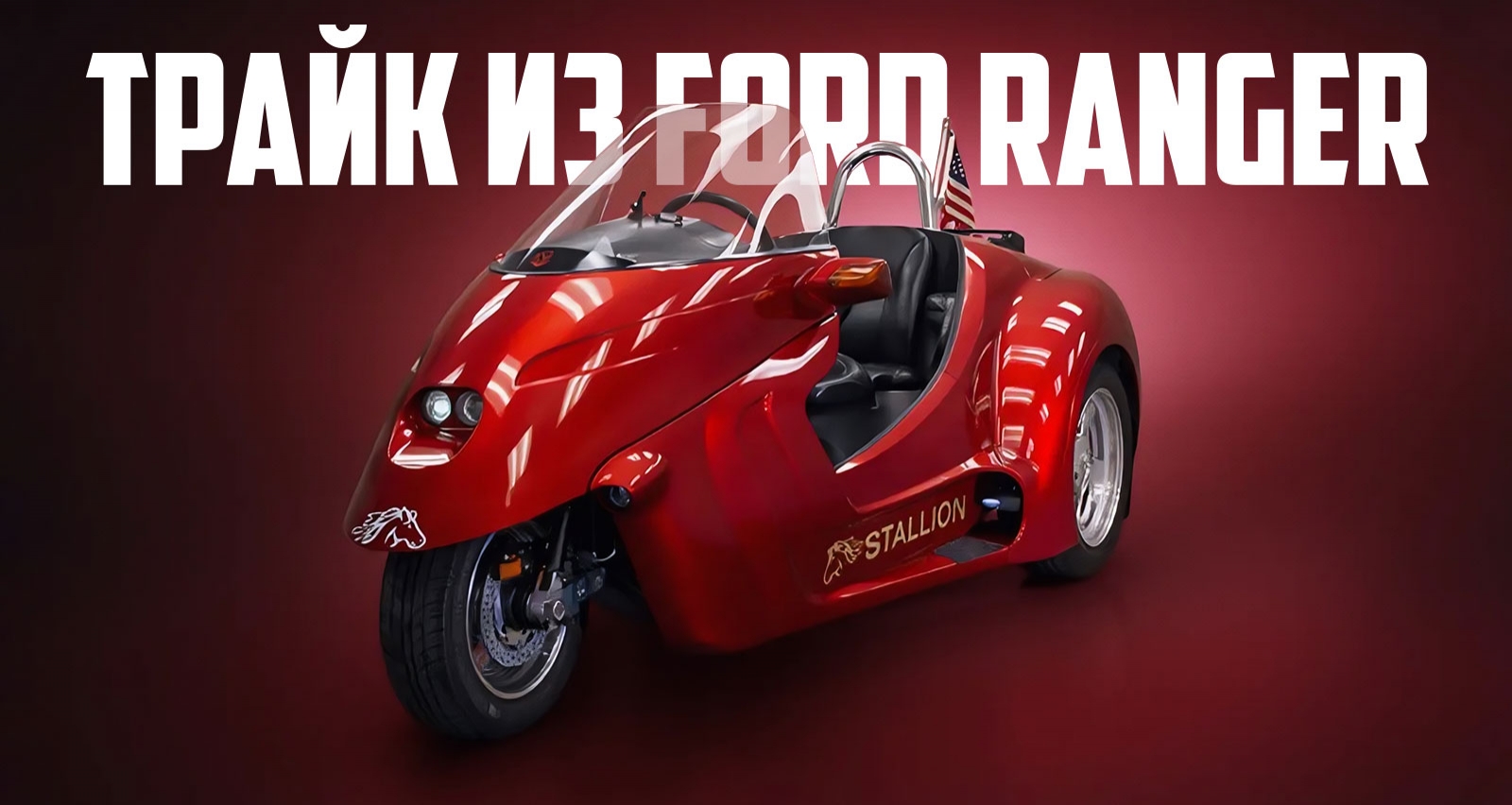 Это трайк с тремя колесами, рулевым колесом и кондиционером. А самое интересное заключалось в том, что по сути это был старый Ford Ranger, сжатый до размеров небольшого трёхколёсного транспортного средства.