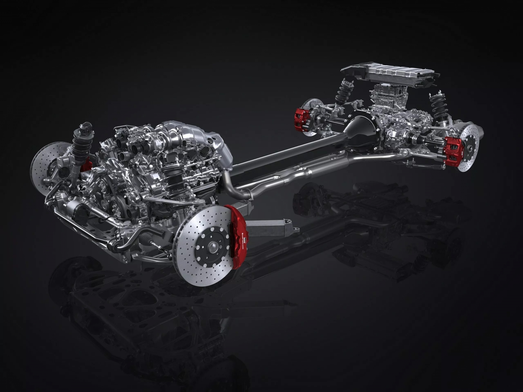 Привод — исключительно на задние колёса. Toyota озвучивает минимум 650 л.с. и 850 Н·м крутящего момента — и намекает, что цифры могут быть ещё выше. К тому же двигатель поддержан электромотором, так что отклик должен быть впечатляющим.