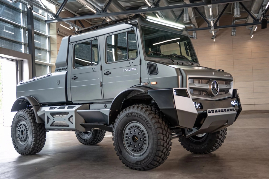 Этот единственный в своём роде автомобиль сочетает фирменную технику Unimog с дорогими материалами и эффектным стилем, рассчитанным на то, чтобы впечатлять как на внедорожных трассах, так и у входа в очень респектабельные отели. Под всей этой внешней мишурой по-прежнему скрывается Unimog модели U 4023 с портальными мостами, гибкой рамой и тремя блокировками дифференциалов.