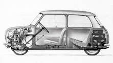Алек Иссигонис, уже прославившийся как создатель Morris Minor, получил эту задачу. Его решение было одновременно простым и радикальным: установить двигатель поперечно, коробку передач разместить под ним, колёса разнести по углам кузова, а всё остальное пространство отдать пассажирам.