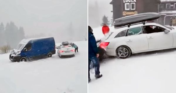 Водитель Audi A4 Avant случайно устроил кёрлинг автомобилями в горах