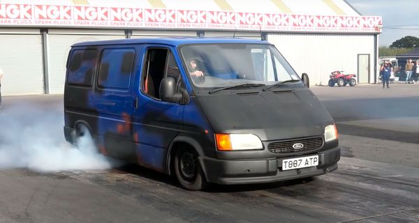 Что получится, если оснастить старенький фургон Ford Transit двигателем V8 от Lexus? Такой необычный слипер можно было увидеть на трассе Santa Pod...