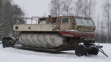 Его шнеки, наполненные полимером, позволяют вездеходу преодолевать водные преграды, однако по твердым поверхностям (например, асфальт) ему двигаться противопоказано.