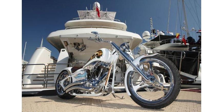 Это Harley-Davidson Rocker от House of Thunder. Его цена составляет 20 000 000 долларов, так как байку прилагается небольшая океанская яхта.