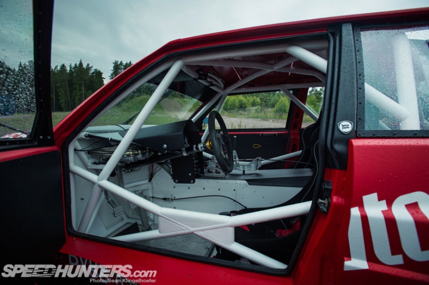 Внутри, даже столь непосвященный в тему Lancia человек как я, сразу же поймет - что-то тут не так. На первый взгляд нагромождение труб в салоне кажется лишь каркасом безопасности, но конца этих труб не видно. На самом деле то, что вы видите - это часть каркаса, но помимо него это часть самодельной пространственной рамы.