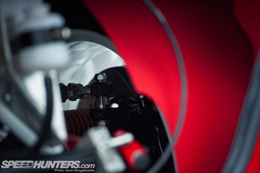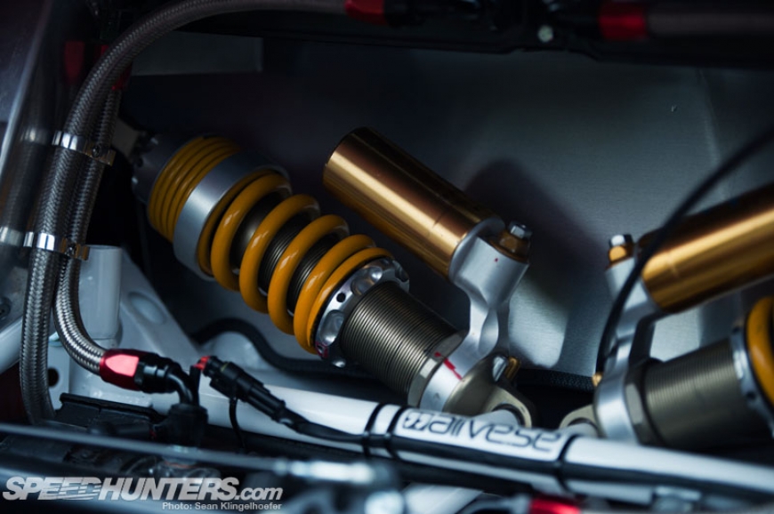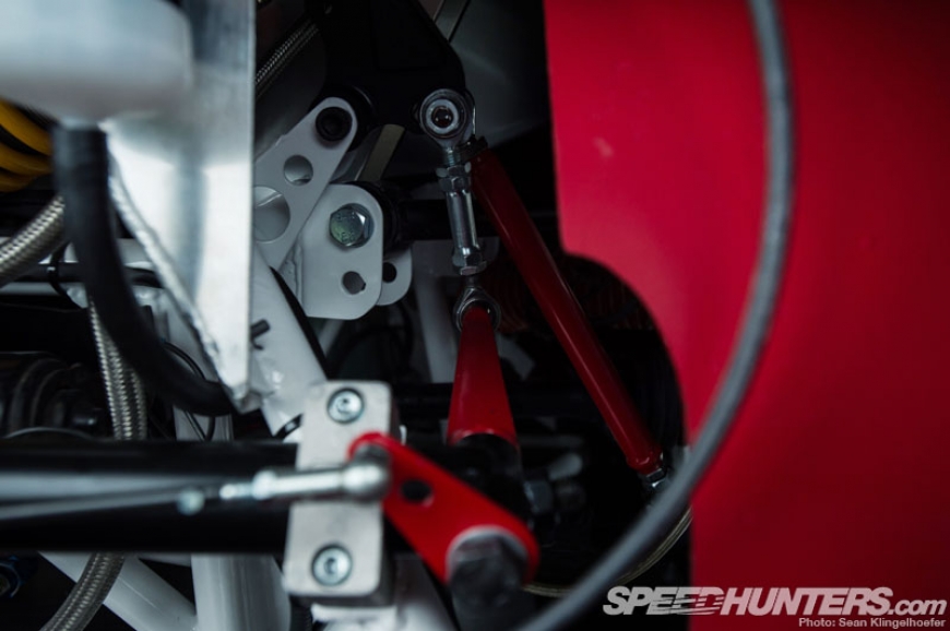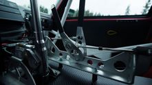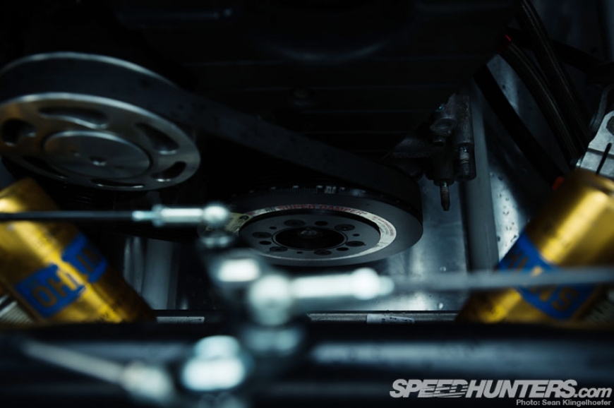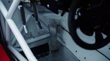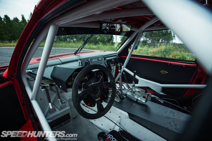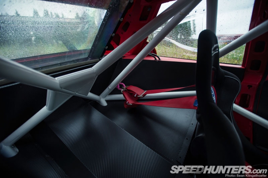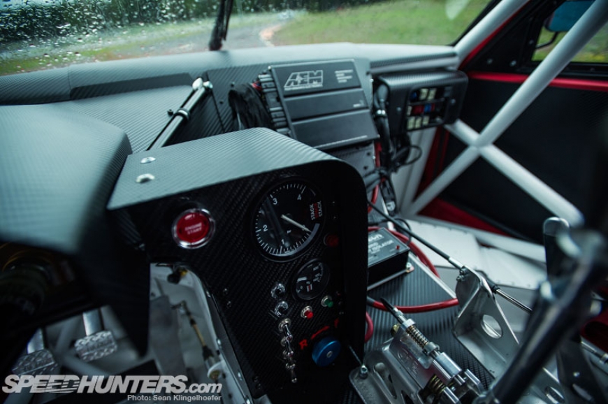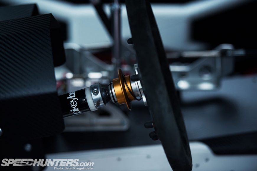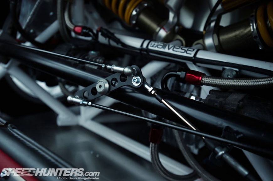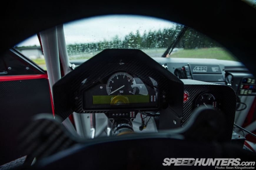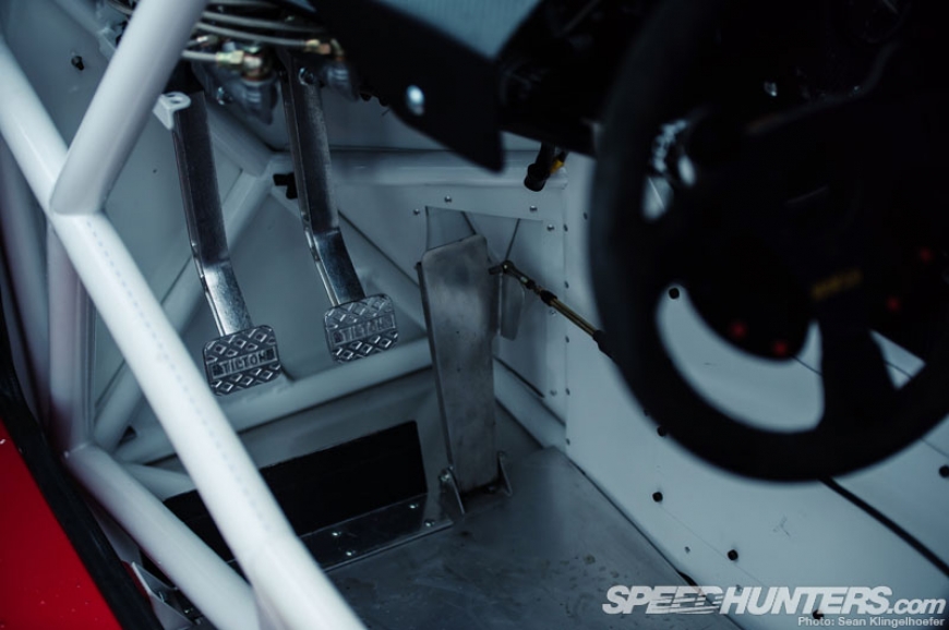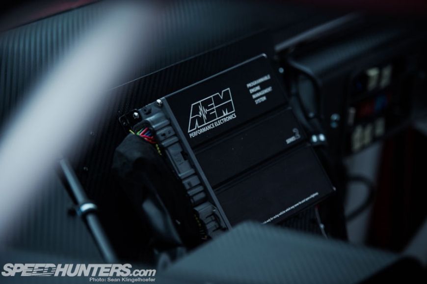 Временами в периферийное зрения пилота будут попадать детали, на которые ушло огромное количество часов работы. Чтобы компенсировать изменение водительской посадки были использованы кастомный педальный узел, который тридцать сантиметров смещен от оригинального местоположения педалей. Чуть правее педали акселератора находится массивный трансмиссионный тоннель, поверх которого расположилась электроника.