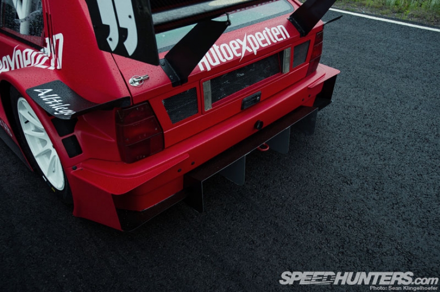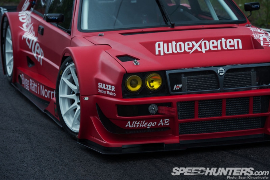 Лини кузова машины были столь правильными и чистыми, но в тоже время, весьма интересно раздутыми. Мне, будучи дилетантом в плане Lancia, было трудно определить, какие именно места были изменены. Но я подозревал, что стоковых деталей тут мало. Подозрения позже подтвердились и я выяснил, что практически весь экстерьер за исключением, пожалуй, дверных ручек и решетки, был создан в гараже. Однако, на тот момент, я лишь рассматривал формы.