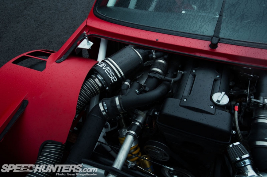 Двигатель расположился аккурат за передней осью. По словами самого Питера, подобным расположением он старался добиться правильной развесовки. В тот момент я поперхнулся, осознав, что ментальность этого проекта только-только начинает проявляться.