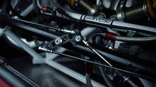 Из получившегося скелета, наш сумасшедший, начал конструировать LaSupra. На каком-то этапе он, наверное, понял, что некий аналог амортизатора ему все же понадобится, но места для оного не осталось. Либо так, либо он действительно гений. Не важно, по какой причине, Питер решился на установку подвески типа "пуш-род".