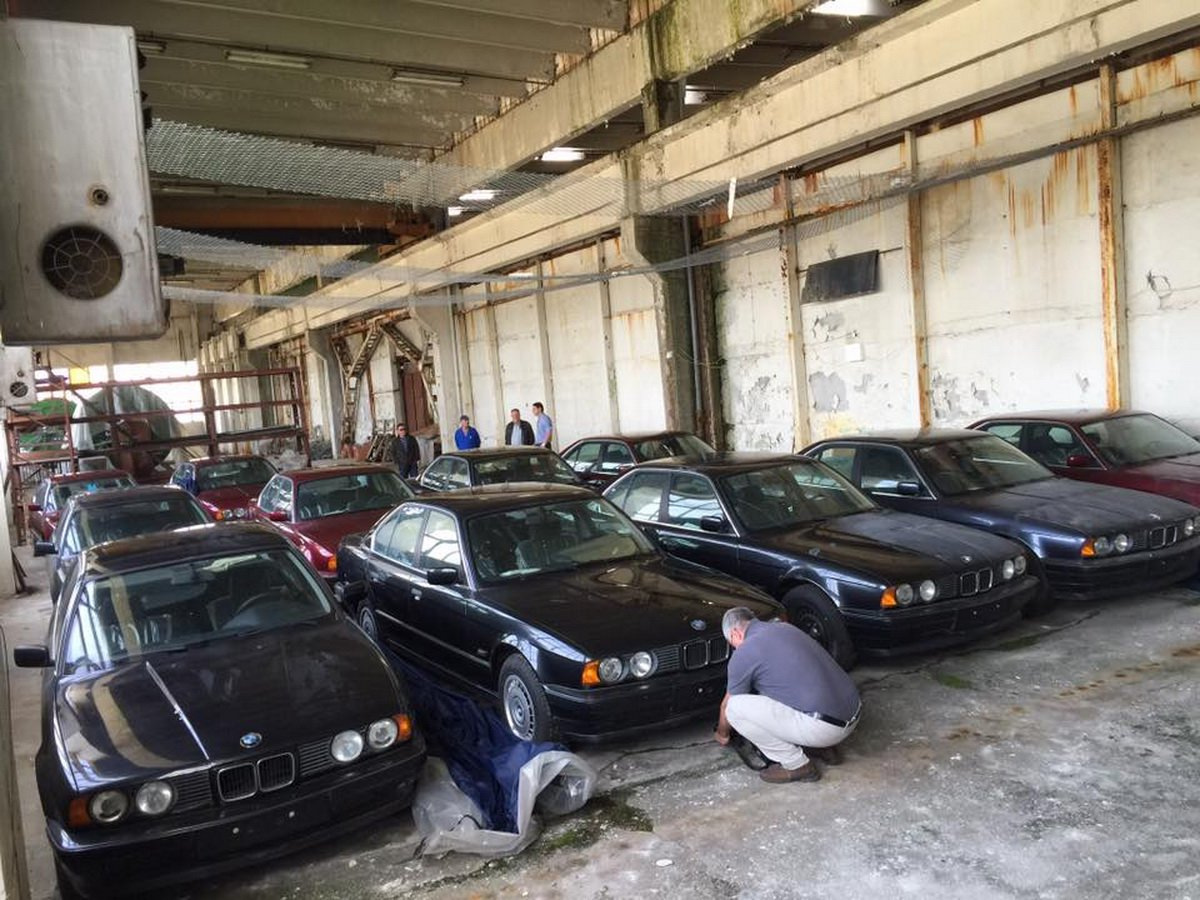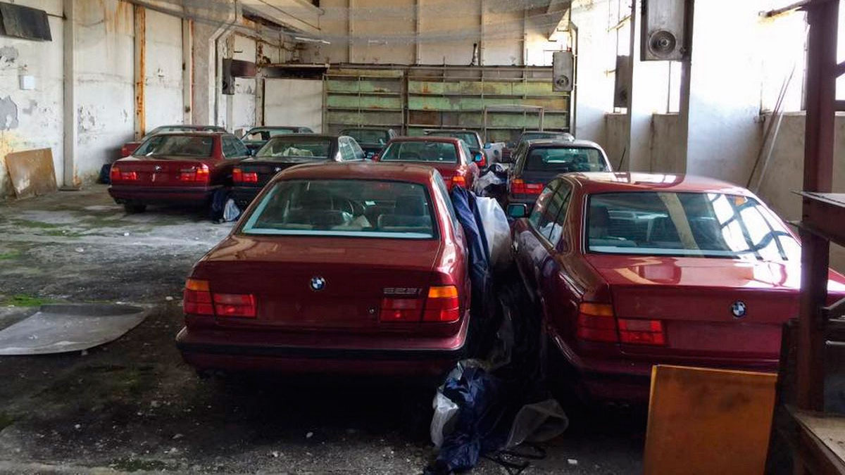 Не один, не два, а сразу одиннадцать автомобилей BMW E34 5-й серии были найдены на старом складе в болгарском городе Благоевград. 10 седанов и один универсал, а на одометре нулевые пробеги!
