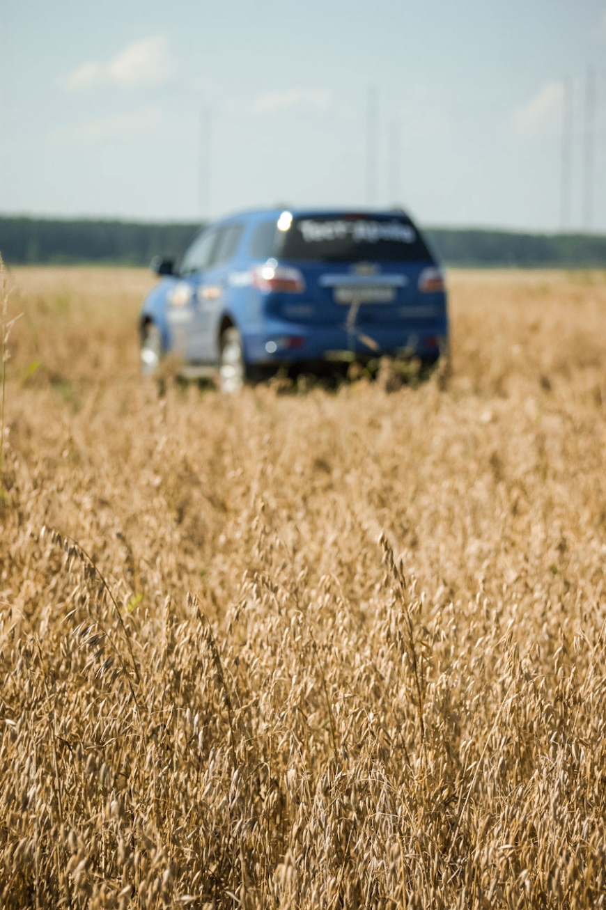 Наш тест начался сразу с небольшой разминки – автосалон нашего партнёра Центр-Авто находится на выезде из города и, чтобы успеть на место съёмок, мы прибегли к народной хитрости и сократили наш путь по волнистой и разбитой обочине. Давно я не видел завистливых взглядов владельцев кроссоверов – наш Trailblazer, словно тяжёлый танк, уверенно пробегал по внушительным рытвинам, а в салоне ощущалась лишь небольшая тряска, причём пассажир на последнем ряду не ощущал большего дискомфорта, чем остальные.