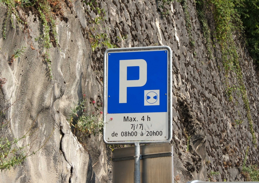 Подъехав в первый раз к парковке вот под таким знаком мы долго искали паркомат , где можно оплатить . Было понятно , что стоять можно не более 4 часов с такого по такой час. Мы спросили у водителя туристического автобуса , он сказал что на этих местах можно стоять 4 часа бесплатно , только нужно набрать время постановки автомобиля на каком-то диске . Мы сказали, что у нас никакого специального диска нет . Тогда он сказал, что можно написать на бумажке время. Вернувшись к своей автомашине ,я решил проверить в бардачке - нет ли чего полезного . И там оказался специальный диск ( подобный тому , который изображен на знаке ) , на котором нужно набрать нужное время постановки авто на данное парковочное место .